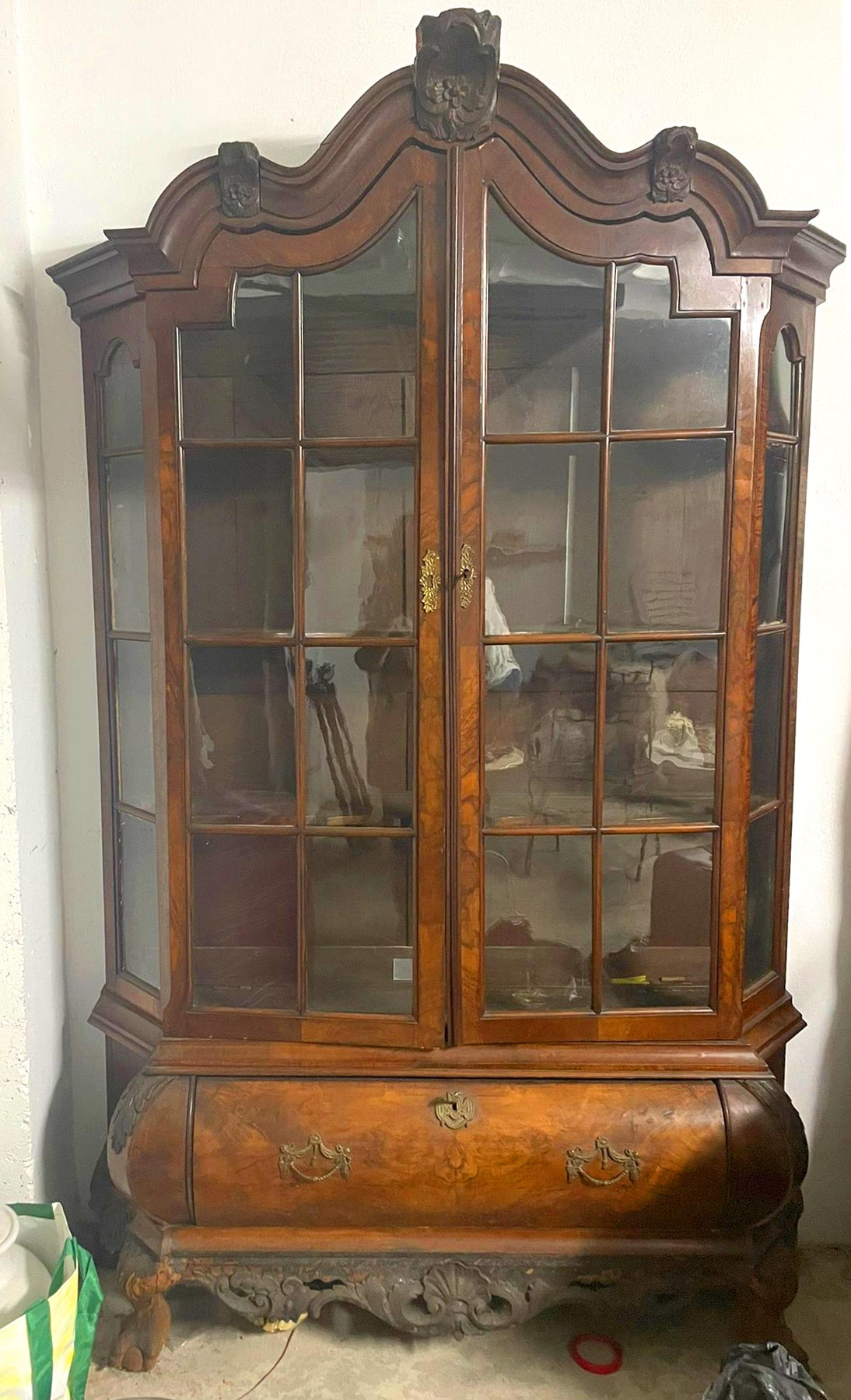 Preciosa vitrina de origen holandés, datada a principios del siglo XIX. Realizada en madera noble, destaca por su elegante estructura, líneas armoniosas y gran capacidad de almacenaje y exposición.